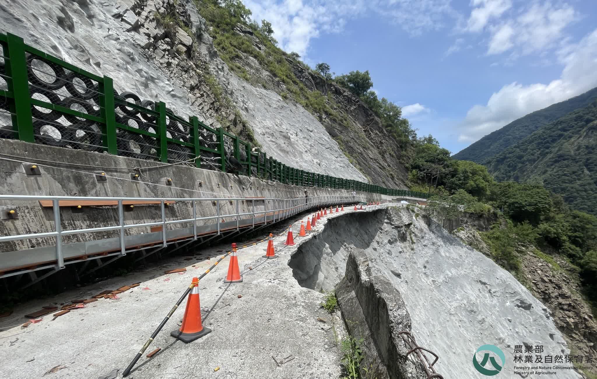 照片摘要 郡大林道修復工程 逐期穩健推進 力拼115年6月完成搶通 郡大林道為森林經營與資源管理的重要路線,也是攀登百岳郡大山的必經要道,其中 4.7 公里處在 0403 地震與凱米颱風豪雨影響,發生嚴重路基流失導致交通全面中斷,對林務執行與山域活動造成重大影響。農業部林業及自然保育署南投分署積極爭取經費,規劃分年分期推動復建,第一期邊坡穩定工程已於 114 年8月如期完成,第二期路基修復工程正接續推動中,預計於 115 年 6 月前完工通車。 林業保育署南投分署表示,除4.7公里處損毀最為嚴重,其他路段同樣深受天候與地質影響時常伴隨無預警崩塌或落石情況,後續將秉持「如期推動、品質優先、施工安全」的原則,盡最大努力讓郡大林道早日恢復通行,兼顧森林經營、資源保育與登山需求。 目前郡大林道仍維持全面封閉,南投分署提醒民眾與登山者可選擇其他入山路線或調整其他親山行程;相關復建進度,將持續公告於林業保育署南投分署網站或透過新聞媒體即時更新。